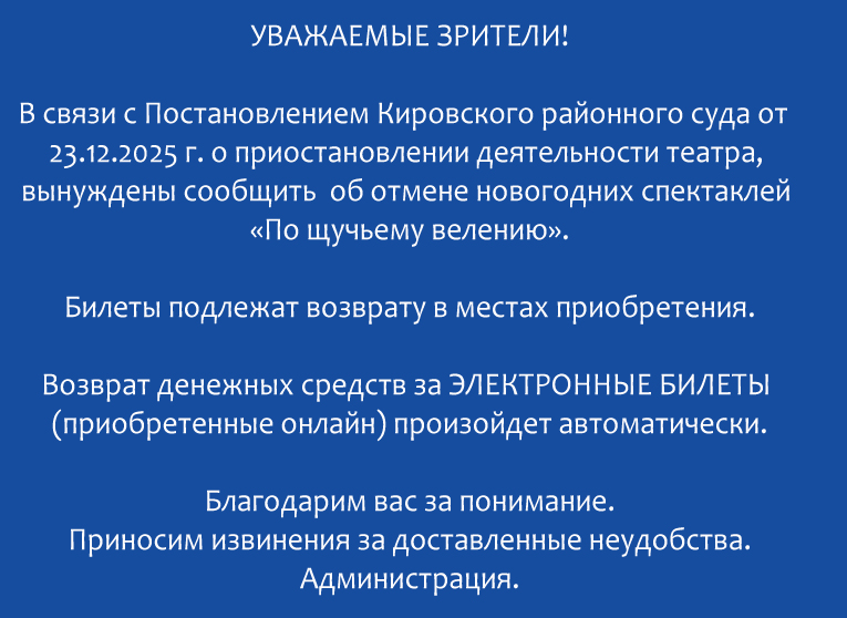 Вынуждены сообщить об отмене спектаклей в январе 2026 г.: